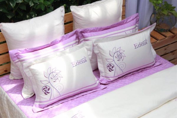 – Sự kết hợp nhẹ nhàng giữa tông màu tím nhạt và vàng kem, điểm thêm họa tiết thêu sắc nét theo phong cách tối giản mang đến sự yên bình, ấm áp cho Edena Solid. Bộ sản phẩm sẽ khiến cho không gian nghỉ ngơi của bạn thêm phần đầm ấm và ngập tràn hạnh phúc.